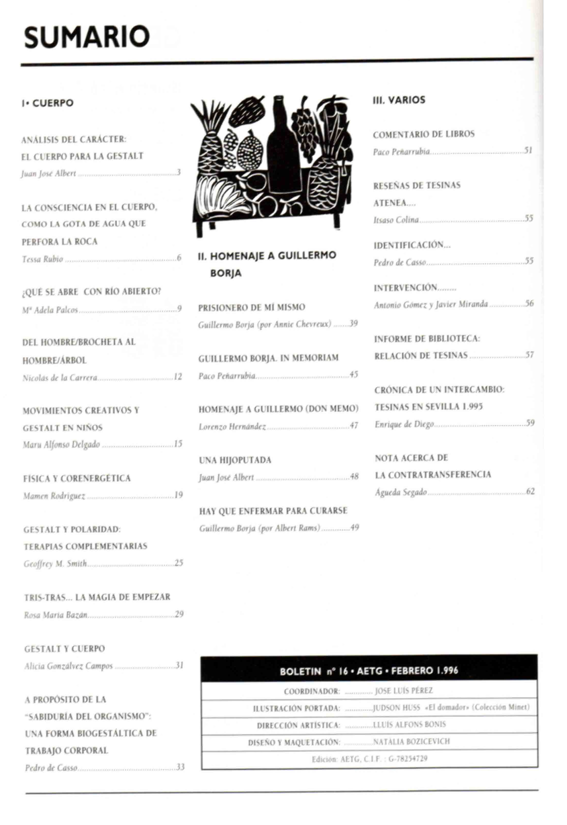 Boletín nº 16. Cuerpo. Homenaje a Guillermo Borja (1996)